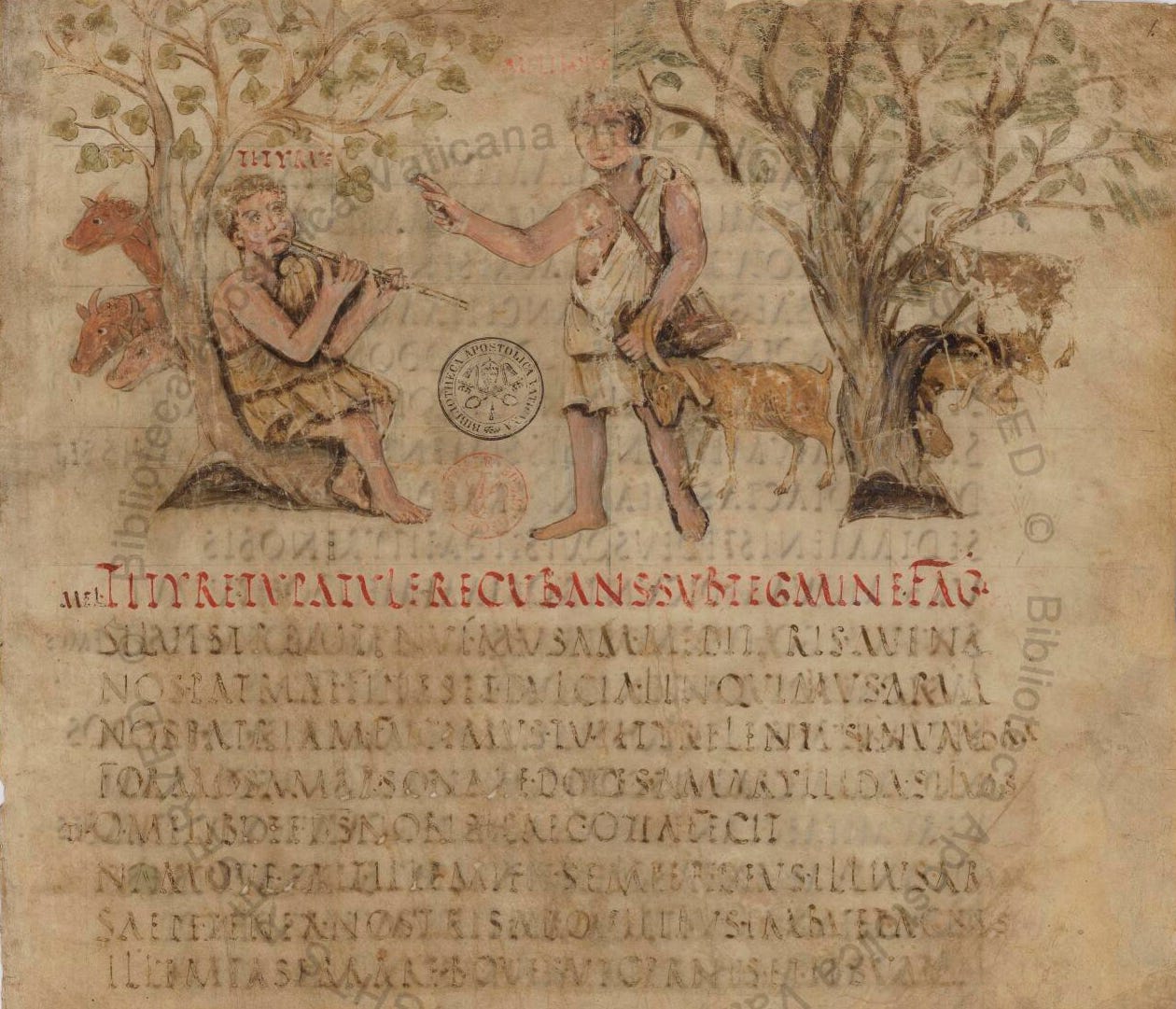 From the very outset, Virgil’s text places itself firmly within the poetic tradition known as the pastoral genre, a tradition that idealises rural life, the beauty of the natural world, and rustic simplicity. The Eclogues themselves are set in a fictionalised version of rural Italy, and depict the lives and loves of shepherds and other country folk.