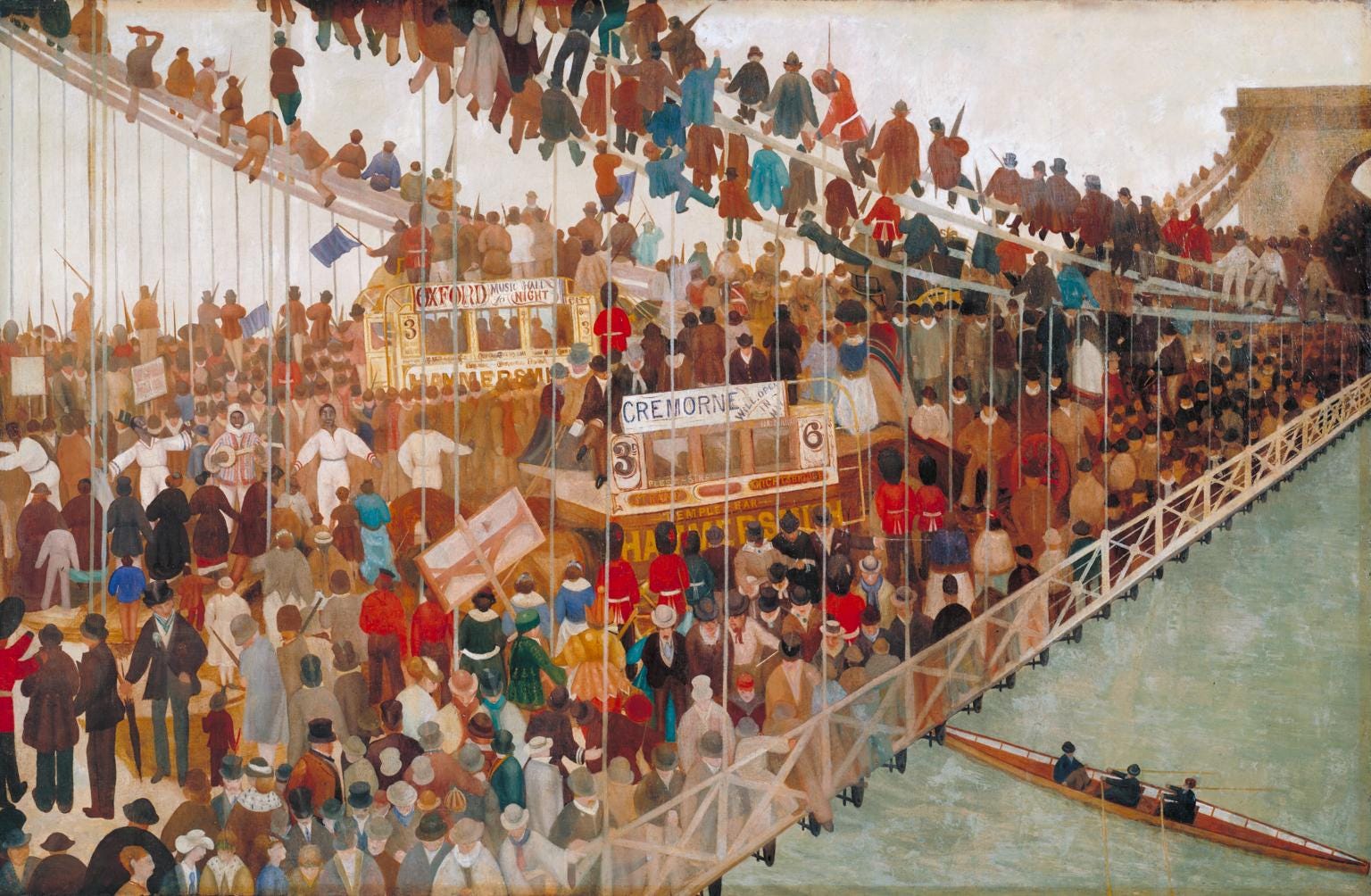 Walter Greaves’ 1862 picture depicts the bridge with a dense crowd assembled to watch the annual Oxford-Cambridge University Boat Race. In the 1870s, there were fears that the bridge was not strong enough to support the weight of heavy traffic when around ~12,000 people would gather there for the event. Greaves was the son of a Thames boatman and a self-taught painter.