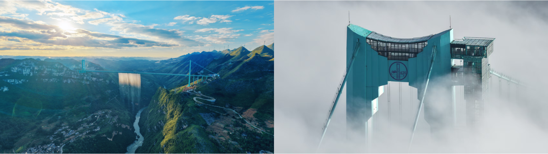 The Huajiang Grand Canyon Bridge, completed in September 2025, is furnished with a “cafe in the clouds” and an artificial waterfall. It spans 2,890m at a height of 625m above the Beipan River and was built in less than 4 years for ~£220m (2.1 billion yuan), less than the proposed restoration of Hammersmith Bridge.23
