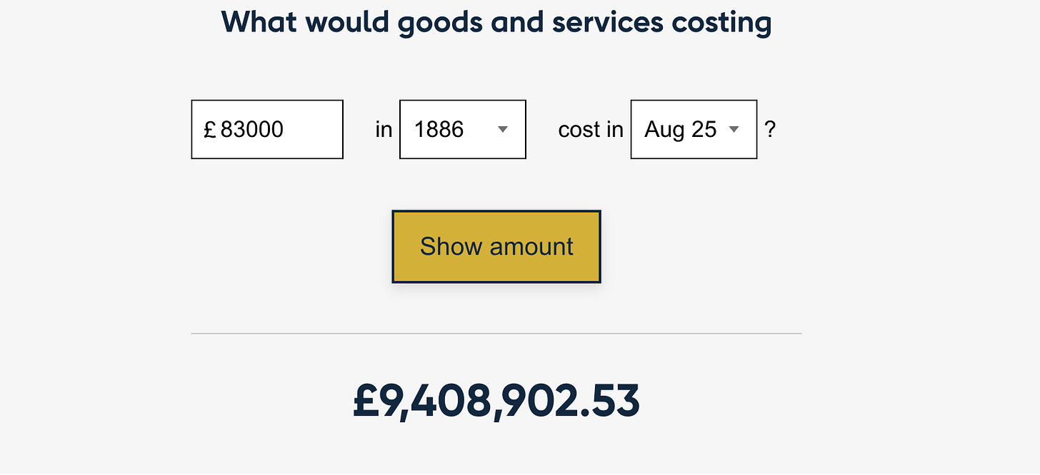 Total cost (£83,000): Contemporary newspaper reports cite contract price of £82,000-£83,000 paid to contractors Dixon, Appleby & Thorne (Pall Mall Gazette, West London Observer, June 1887). Inflation adjustment to 2025 values (£9.4m) calculated using the Bank of England historical price calculator.