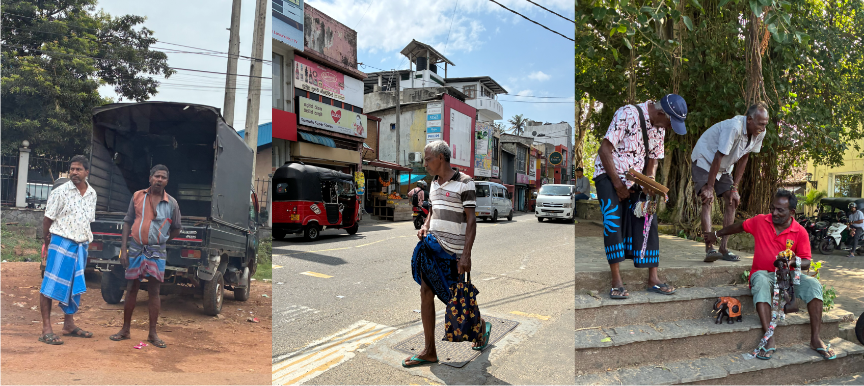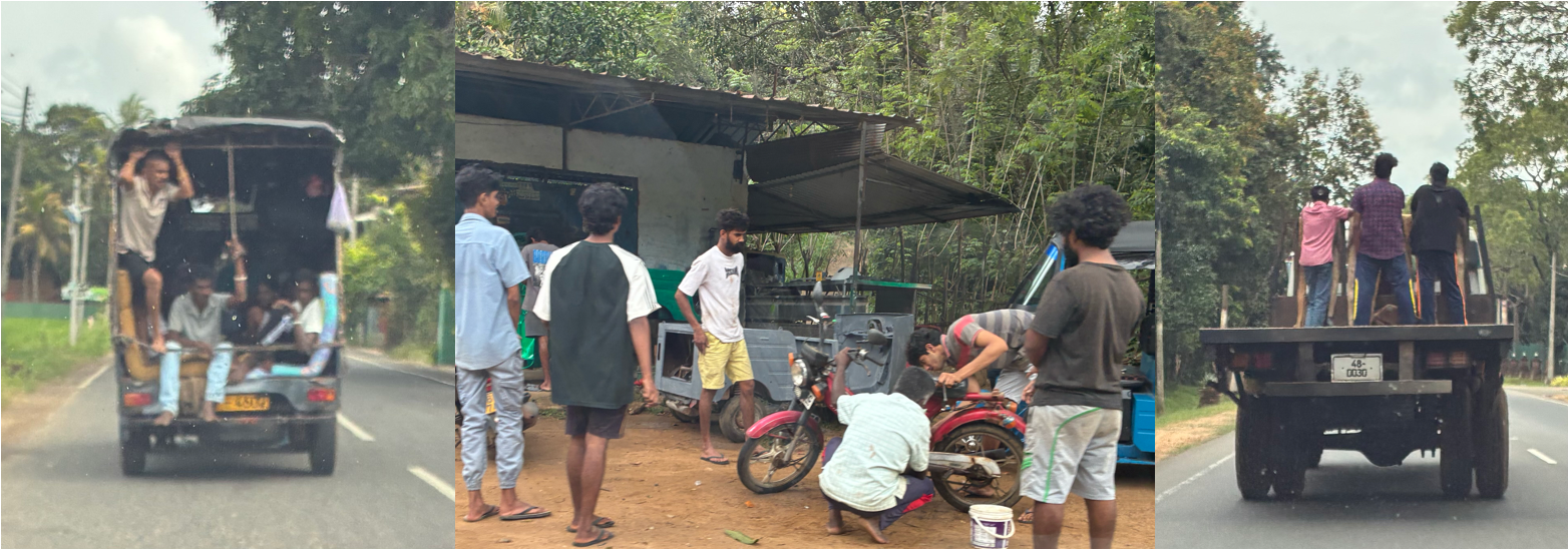 The roadside economy extends beyond food stalls. Every few hundred metres: a tyre shop, a welding operation, a furniture workshop, or an unexplained pile of vehicle parts organised by a system known only to the owner. On the roadside, a lot of local people, particularly older men, sit and observe. It is still unclear to me whether they are waiting for anything in particular.